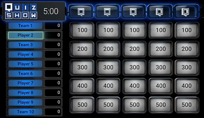 Step into the spotlight with Quiz Show! Players face off in fast-paced Jeopardy style trivia rounds packed with laughter, surprises, and a little friendly competition. With questions covering all kinds of fun topics, everyone gets a chance to shine. Whether you’re battling it out solo or teaming up with friends, Quiz Show brings the excitement of a live game show right to your event. Perfect for keeping the energy high and the crowd engaged! CONTACT US to learn more about Quiz Show!